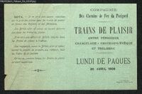 Chemins de fer du Périgord. Trains de plaisir. Lundi de Pâques.