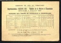 Chemins de fer du Périgord. Horaires des trains supplémentaires.