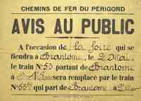 Chemins de fer du Périgord. Horaires des trains spéciaux