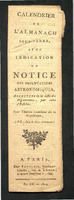 Calendrier de l'almanach sous-cerre avec indication ou notice des observations astronomiques.