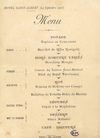Menu du 17 octobre 1903 du Grand Hôtel de France.