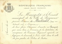 Banquet organisé par la corporation des imprimeurs de Périgueux, à l'occasion du 4e centenaire de l'introduction de l'imprimerie en Périgord par Jehan Carant.
