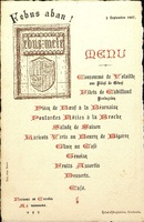 Menu dîner du 31 août 1909