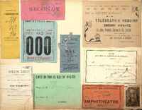 Planche avec divers tickets de spectacles, ou cartes de membre.