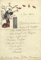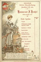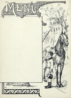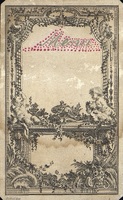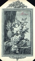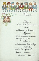 Menu vierge [non daté, rinceaux bleus clairs aux angelots musiciens et tambour cuivré].