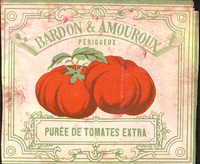 Étiquette d'une boîte de conserve de purée de tomates extra