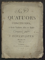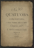 Six quatuors concertans, à deux violons alto et basse composés par F. Hoffmeister.