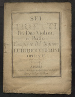Sei trietti per due violini et basso composte del signore Luigi Boccherini. Opera II.