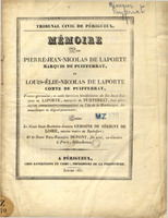 Mémoire pour Pierre-Jean-Nicolas de Laporte marquis de Puifferrat, et Louis-Elie-Nicolas de Laporte comte de Puifferrat, frères -germains, et seuls héritiers bénéficiaires de feu Jean-Jacques de Laporte, marquis de Puiferrat, leur père, ancien commissaire-commandant en l'île de la Martinique, demendeurs en déguerpissement ; contre le sieur Jean-Baptiste-Joseph Lemoine de Sérigny de Loire, ancien maire de Rochefort, et le sieur Paul-François Dupont, fils aîné, ex-libraire à Paris, défendeurs.