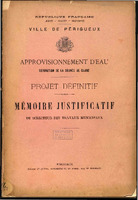 Approvisionnement d'eau . Dérivation de la source de Glane . Projet définitif . Mémoire justificatif du directeur des travaux municipaux [Floirat]