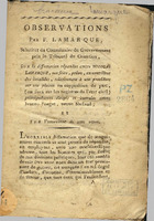 Observation par F. Lamarque, substitut du commissaire du gouvernement près le tribunal de cassation, sur la diffamation répandue contre Nicolas Lamarque, son frère, prêtre, ex-contrôleur des invalides, relativement à une procédure sur une plainte en supposition de par, (ou faux sur les registres de l'état civil) principalement dirigée et instruite contre Jeanne Pouget, veuve Nadaud ; et sur l'assassinat de cette veuve