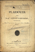 Cour d'assises de Département de la Dordogne. Audience du 19 octobre 1811. Plaidoyer pour P.-J.h Ventou-Lapeyrière, propriétaire, accusé d'assassinat sur la personne de Pierre Barailler, huissier