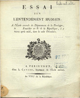 Essai sur l'entendement humain, à l’École centrale du département de la Dordogne, le Fructidor an 8.e de la République, à 3 heures après midi, dans la salle décadaire