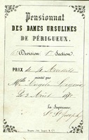 Pensionnat du Monastère de S[ain]te-Ursule de Périgueux